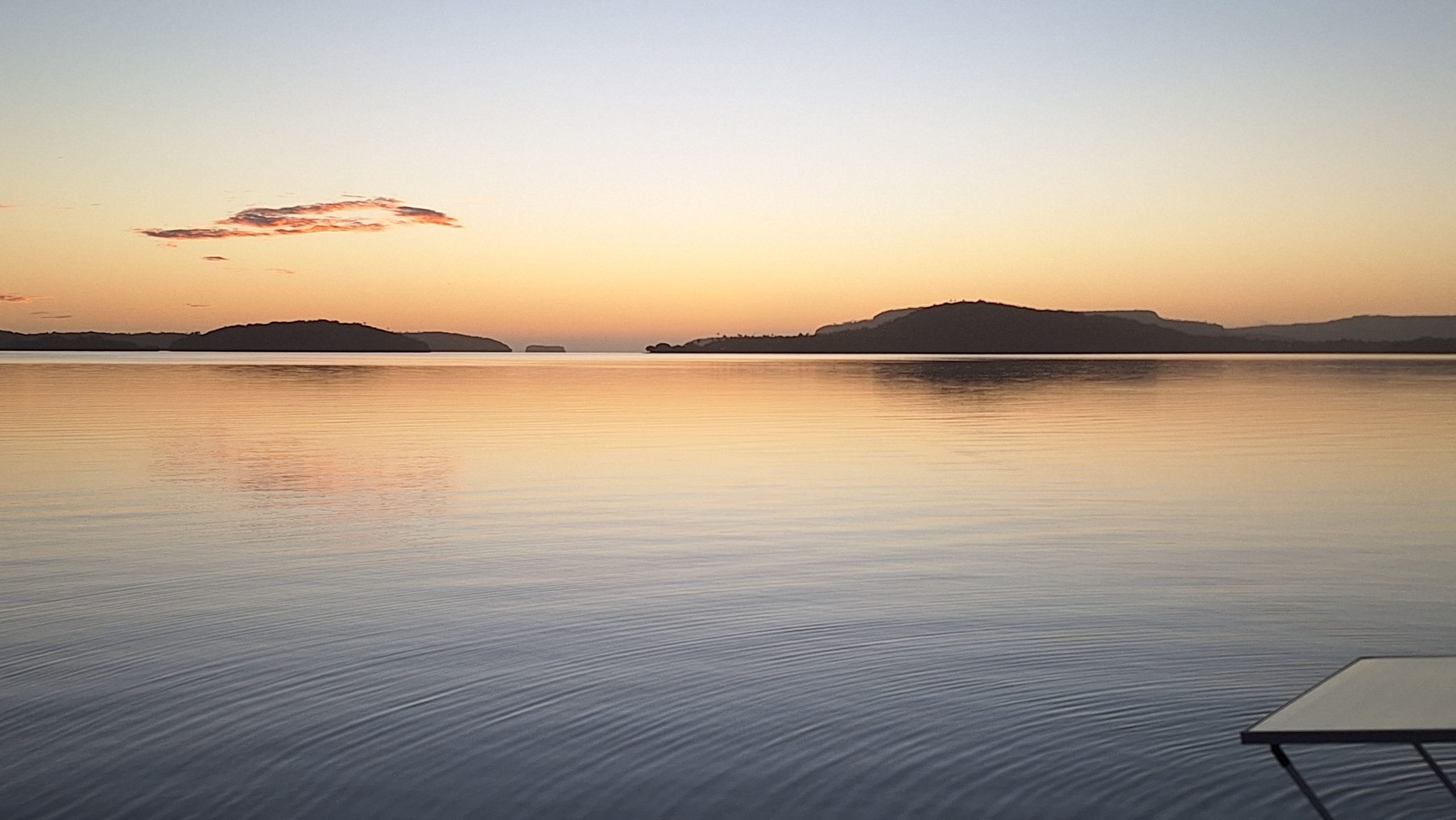 Last night was caped off with a beautiful sunset over glassy waters. This morning was again nice and peaceful. Just the sound of birds in the trees.