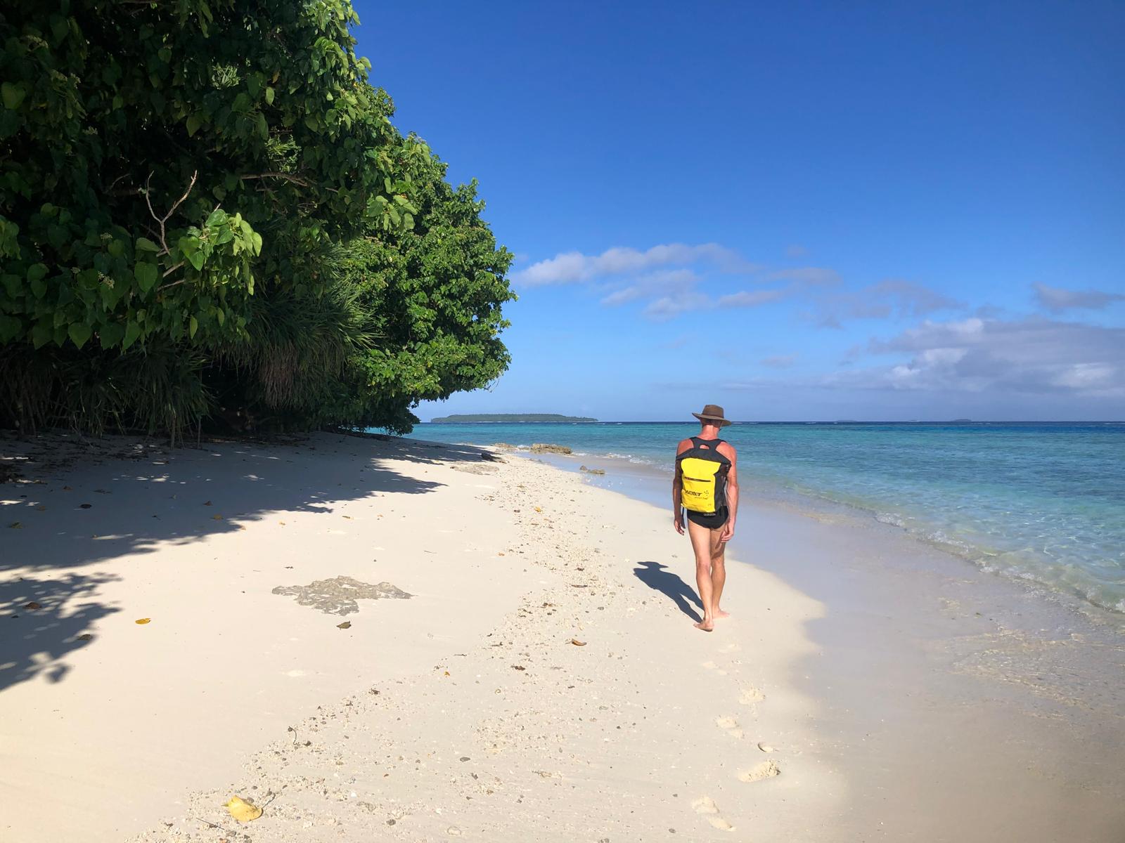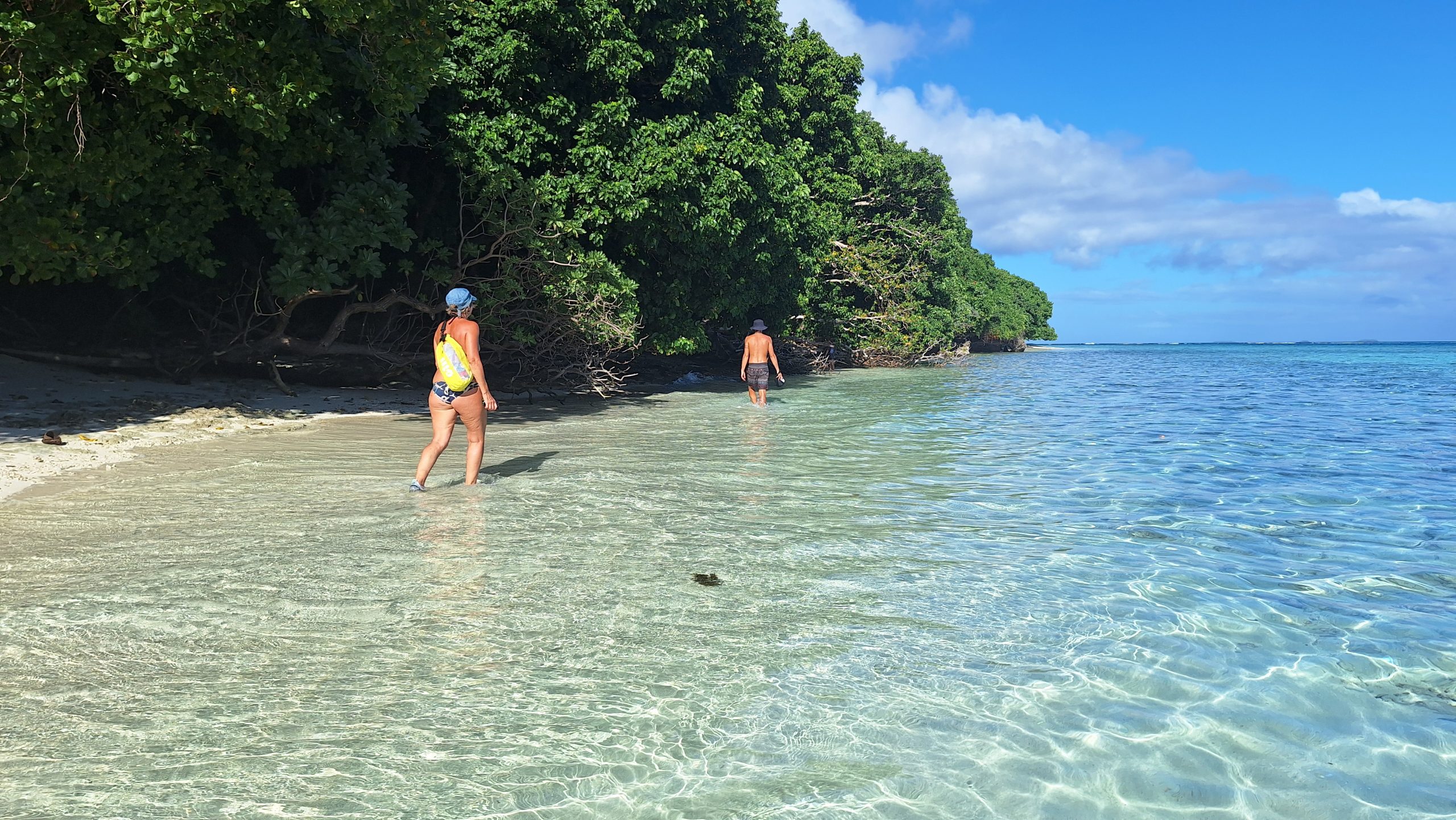 This morning we hauled anchor and looked for a more sheltered place as the wind is going to swing to the south. We have anchored off Euakafa island. We went ashore and met the two locals. Then someone had a great idea “let’s walk along the beaches and around the island”. Several hours later and having to swim one third of the way, we made it back to the dinghy before the tide washed it away.