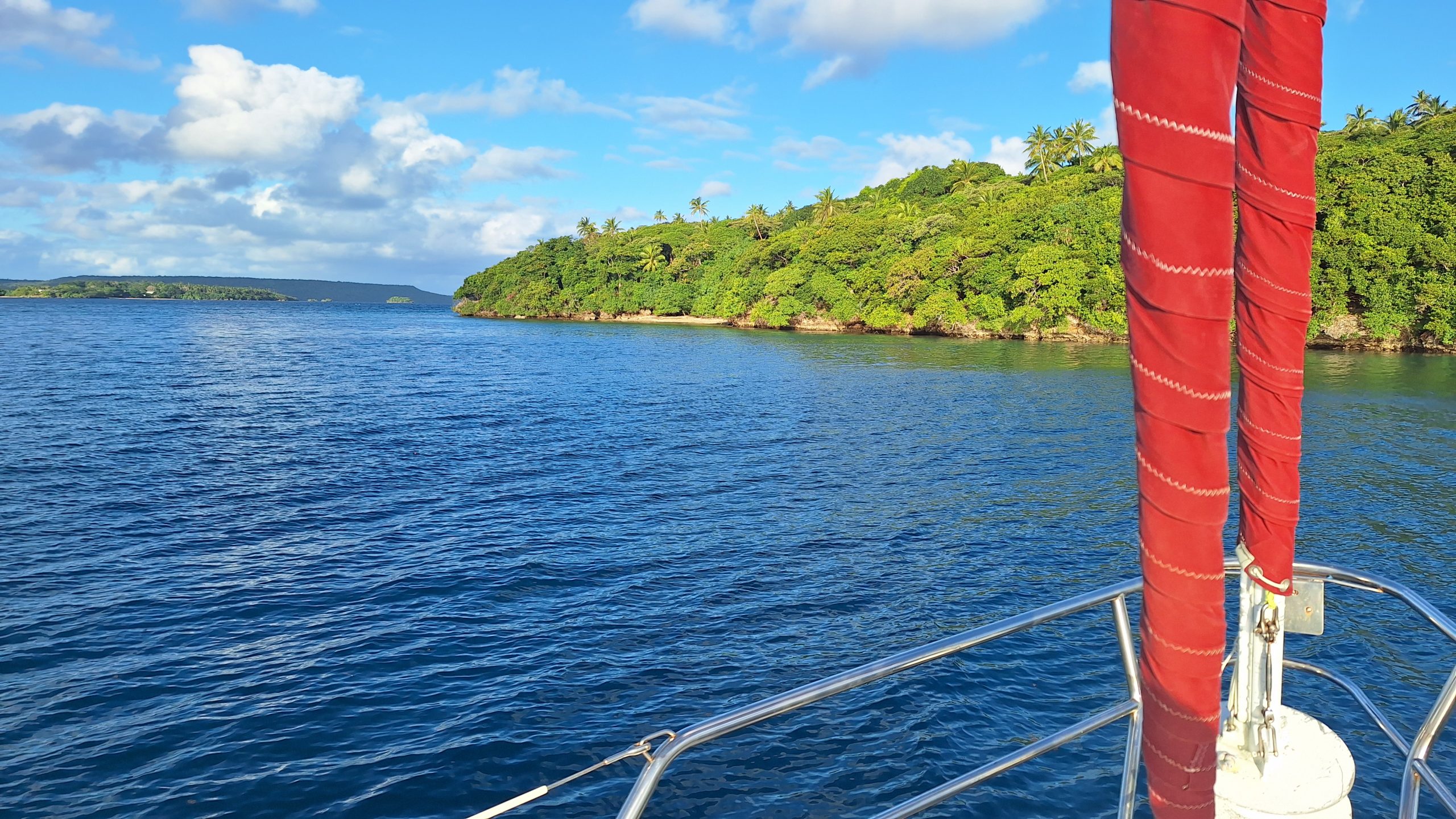 When we left Imagine the bow was in 35m of water and at the stern it was only 4m deep. When we got back I was aware that the wind and tide had changed and now Imagine was facing the other way, with the depth sounder saying we are now in 40m of water. As lunch was being prepared, I was sitting in the cockpit when Imagine turned away from the wind. I knew immediately that the anchor had let go. There was no way the anchor was going dig in again as we drifted further off the steep ledge. We started the motor, hauled up the anchor and headed for Neiafu.
