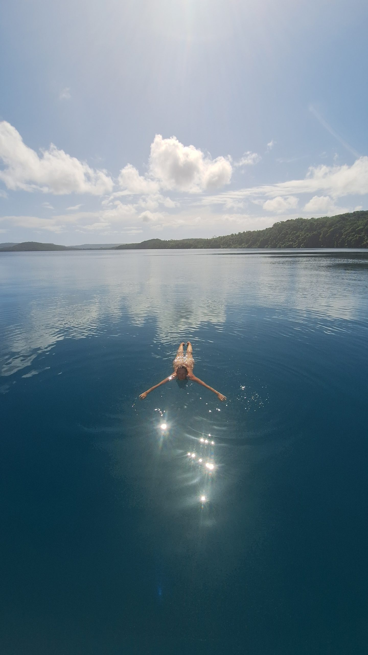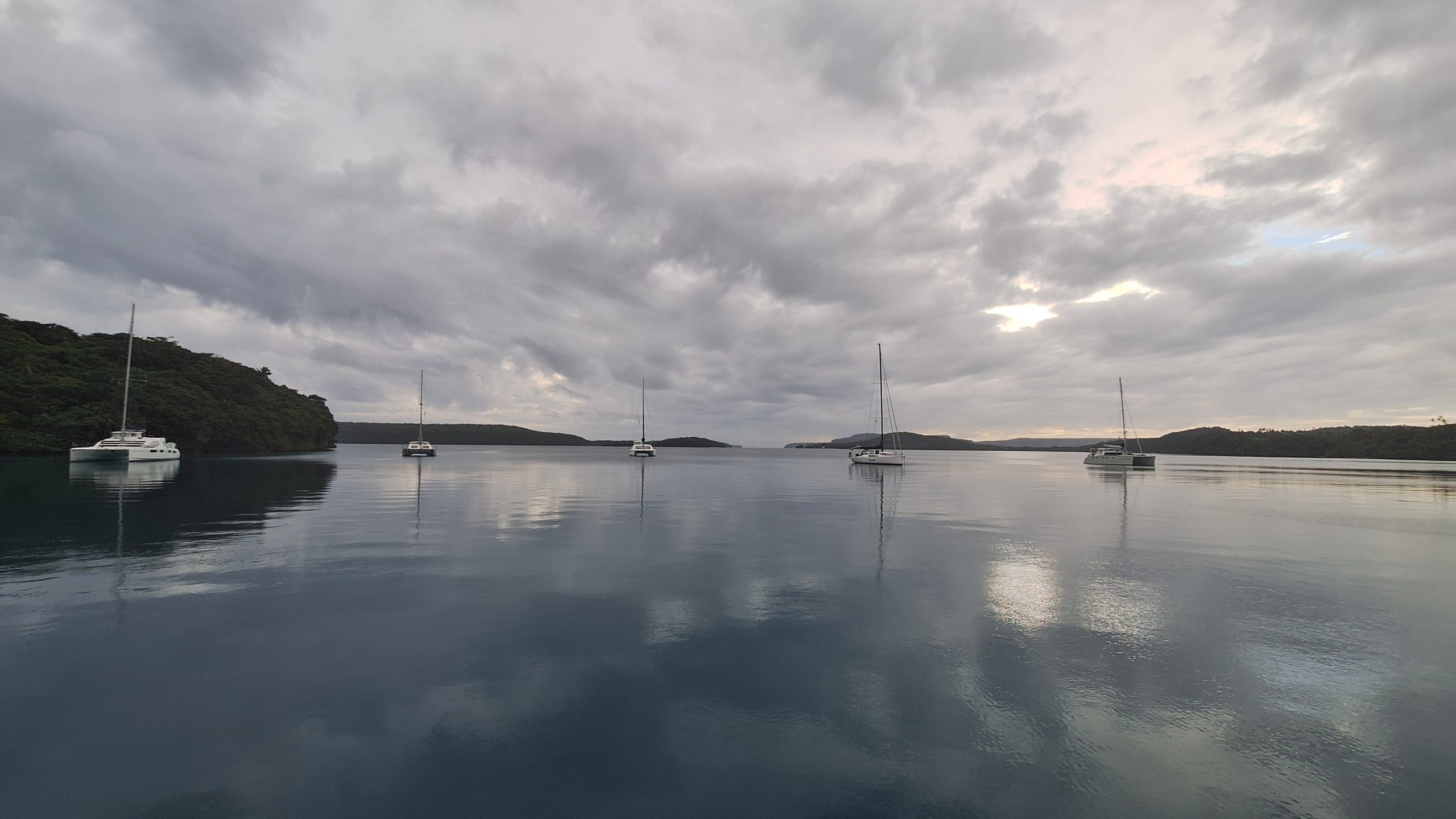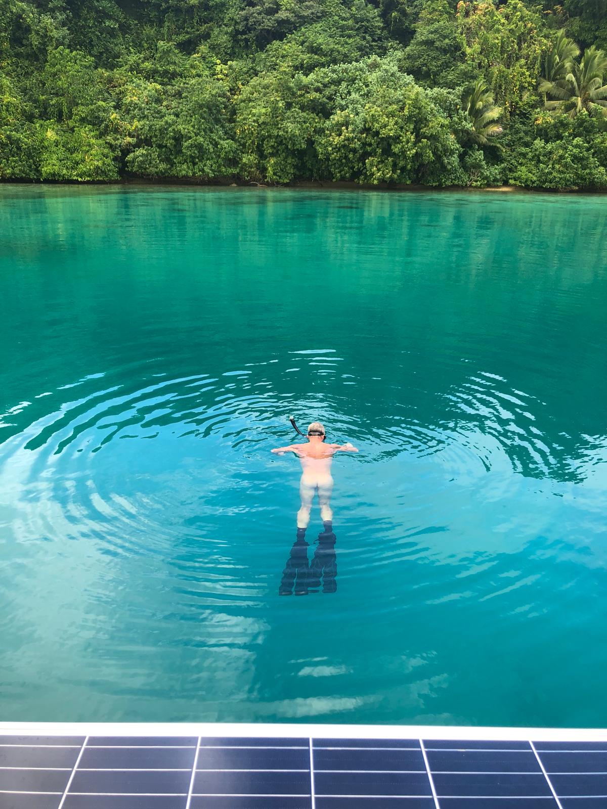 In the bay the water was like mirror reflecting the sky, as we swam in the clear water. The only sound was the birds calling to each other. I took the wind generator apart and fixed it. We had the bay to our selves all afternoon untill 4:00pm. Then they came six boats one after the other. They all lined up as if they were about to charge us.