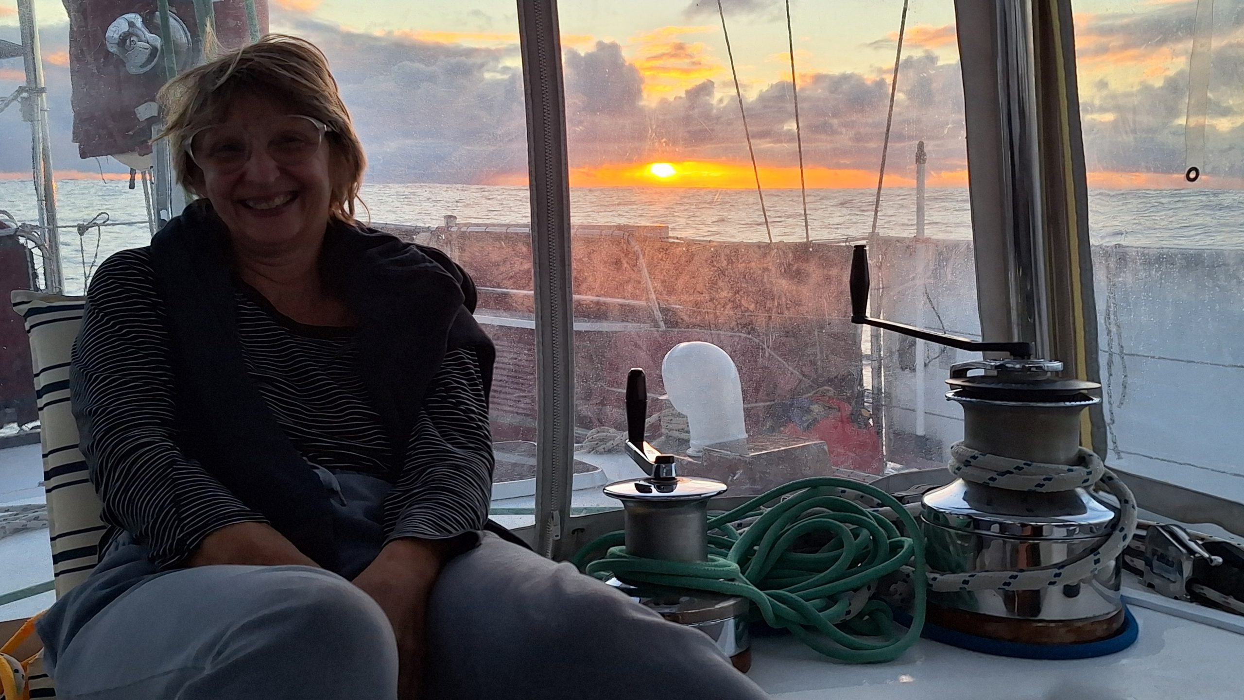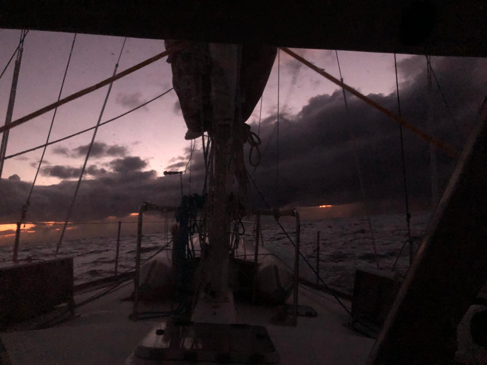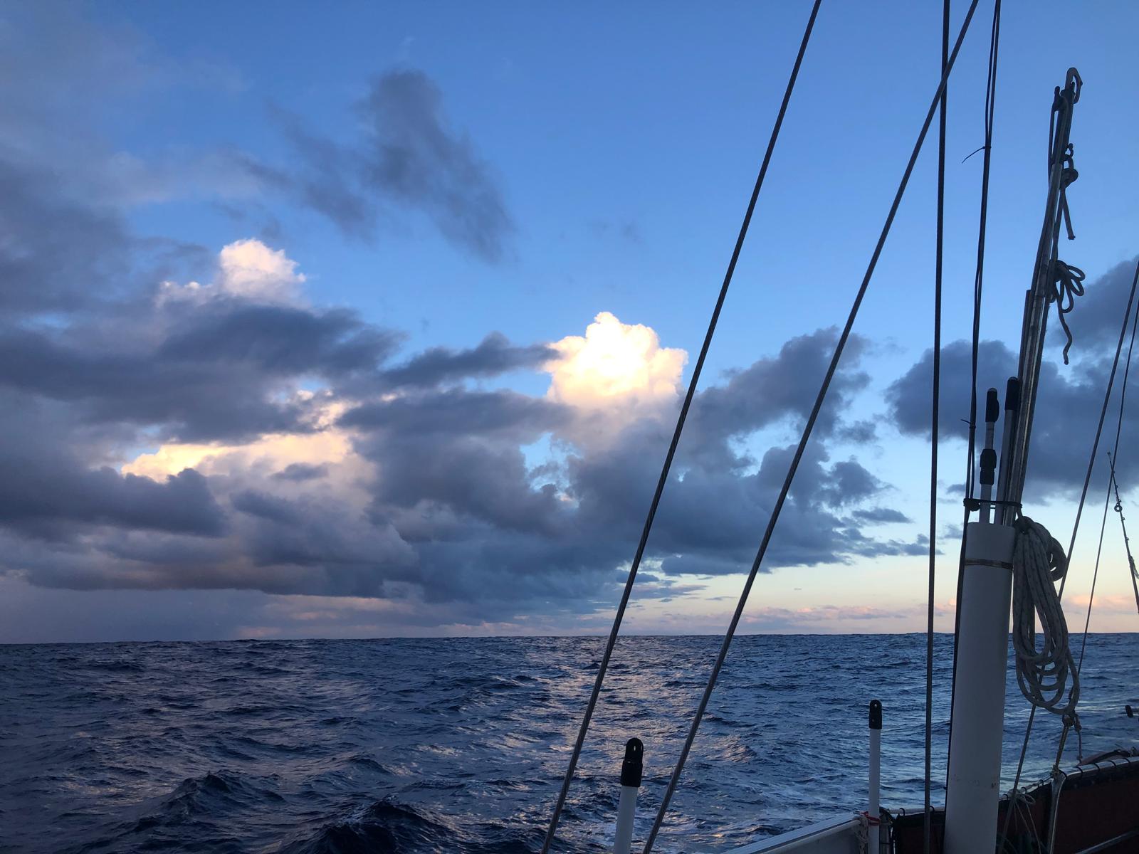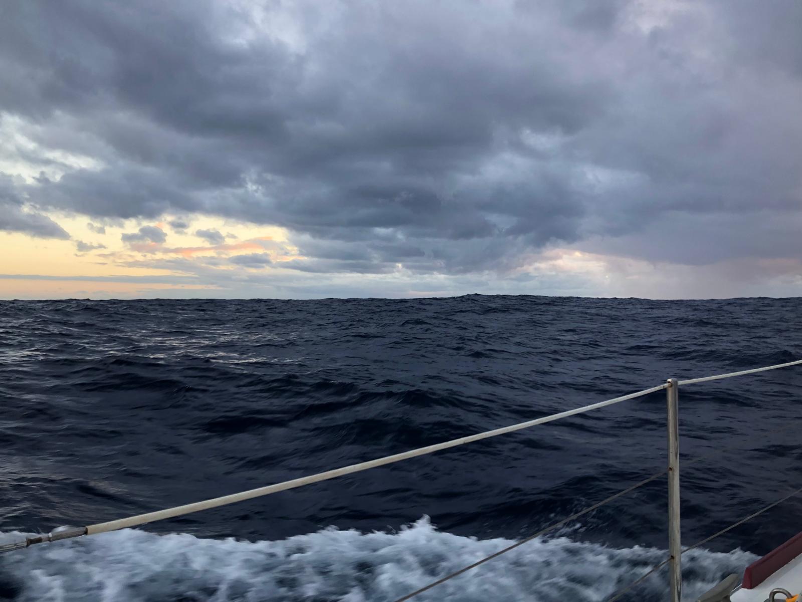 During the day the wind and waves eased and moved more west which has put us on a direct course. This meant only a few sail changes. We are all listing the first things to do when ashore, Ice-cream, ice-coffee, beer, fish & chips, etc.