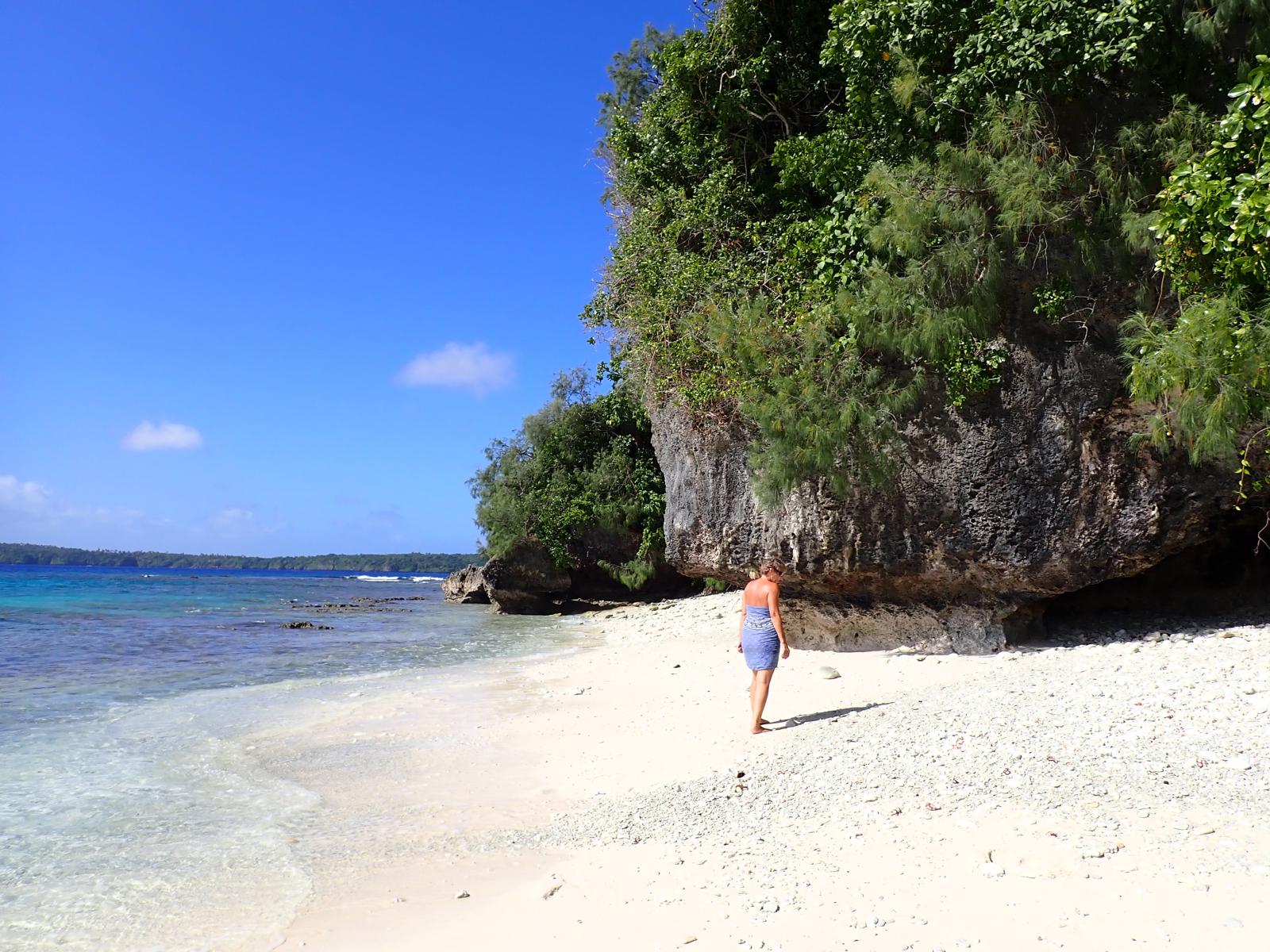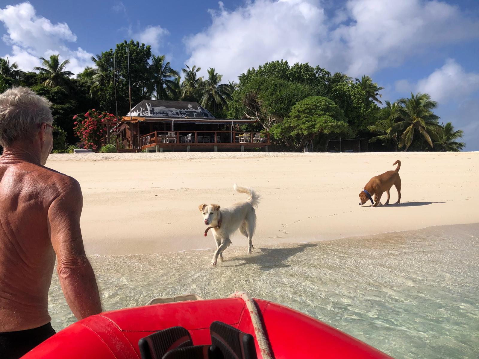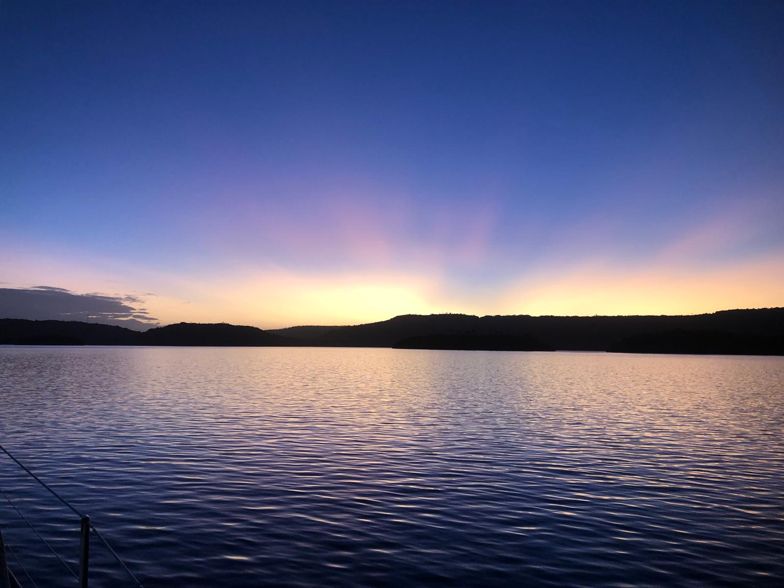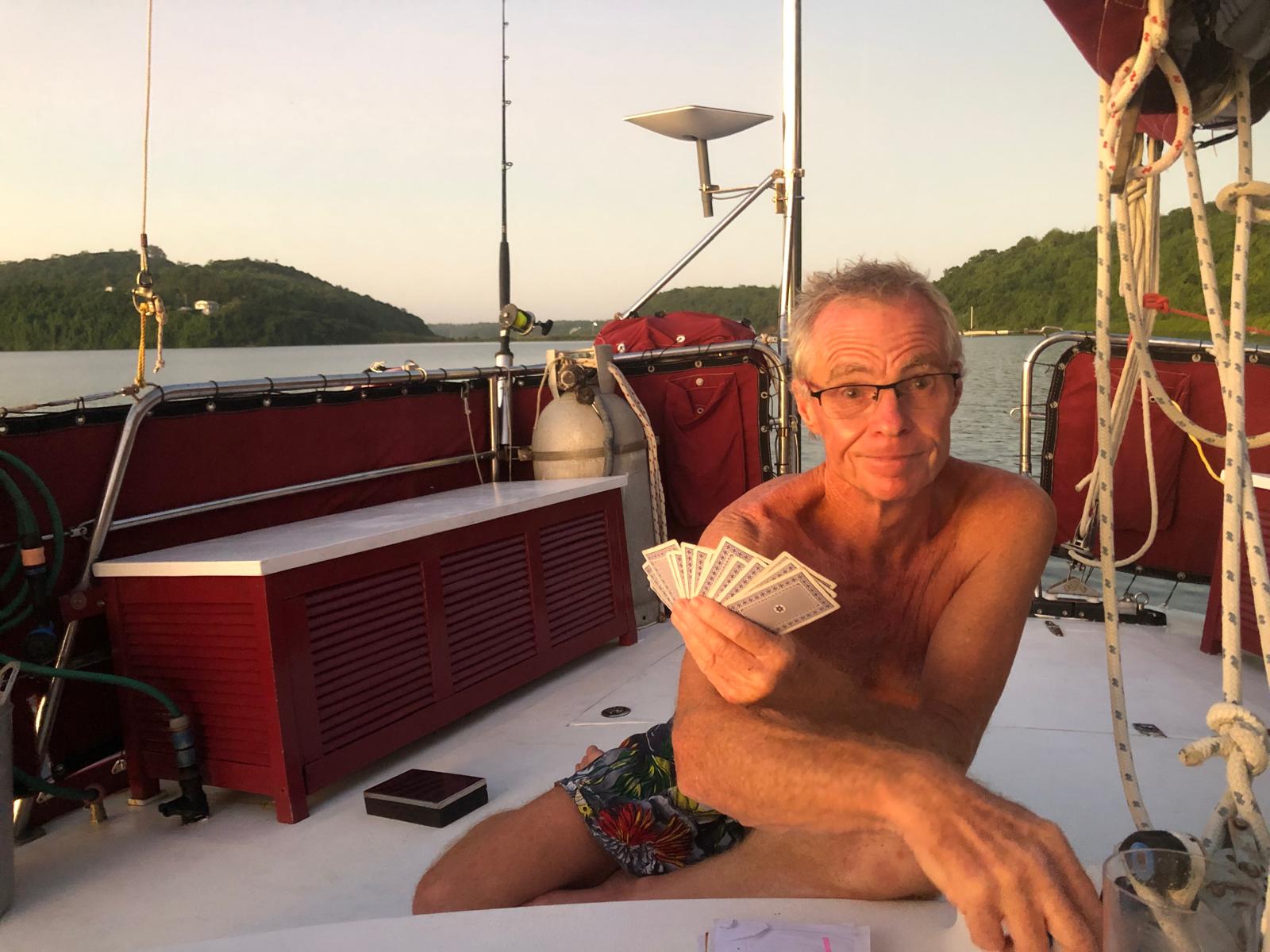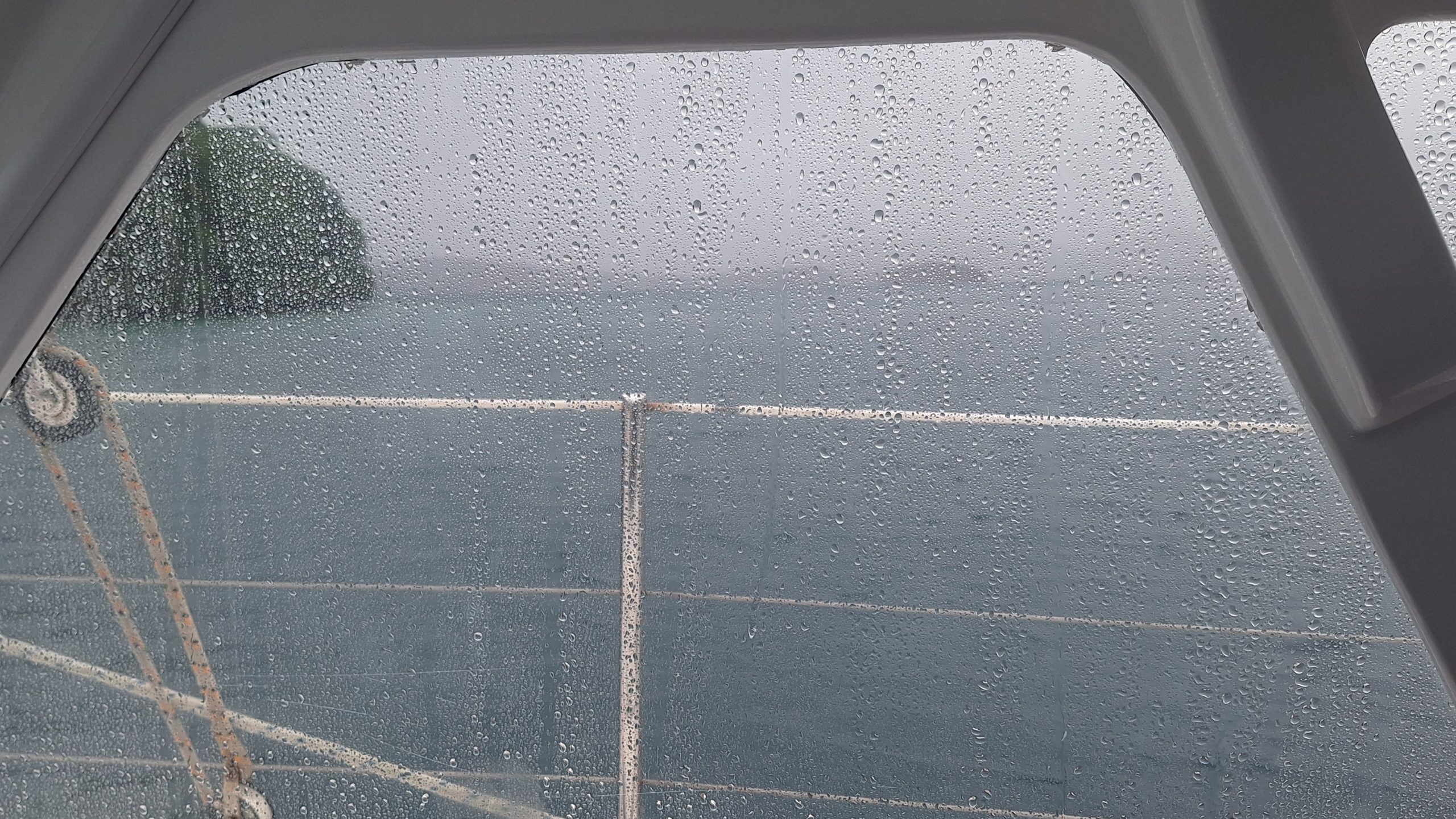 We have sheltered in a bay, where we have been before. We took a walkalong the beach to the reef at low tide. The rain has started, so what do we do on rainy days? We reupholster the seating. It is taking us a long long long time, nothing is straight, neither square and we haven’t choose the easiest pattern, but we have now completed the cushions seats and now have just started on the backs.