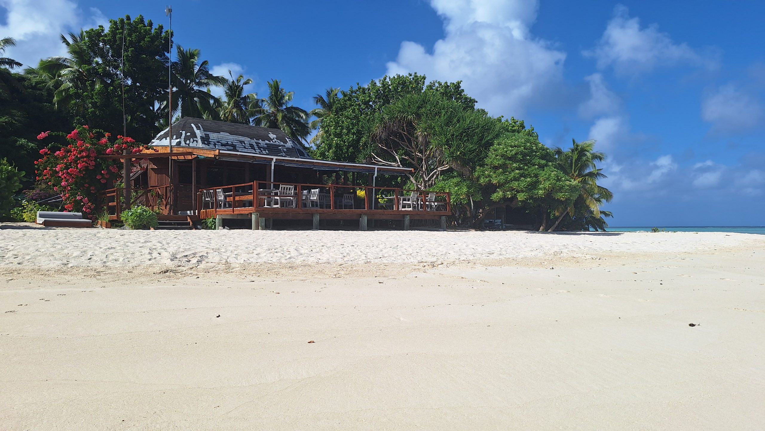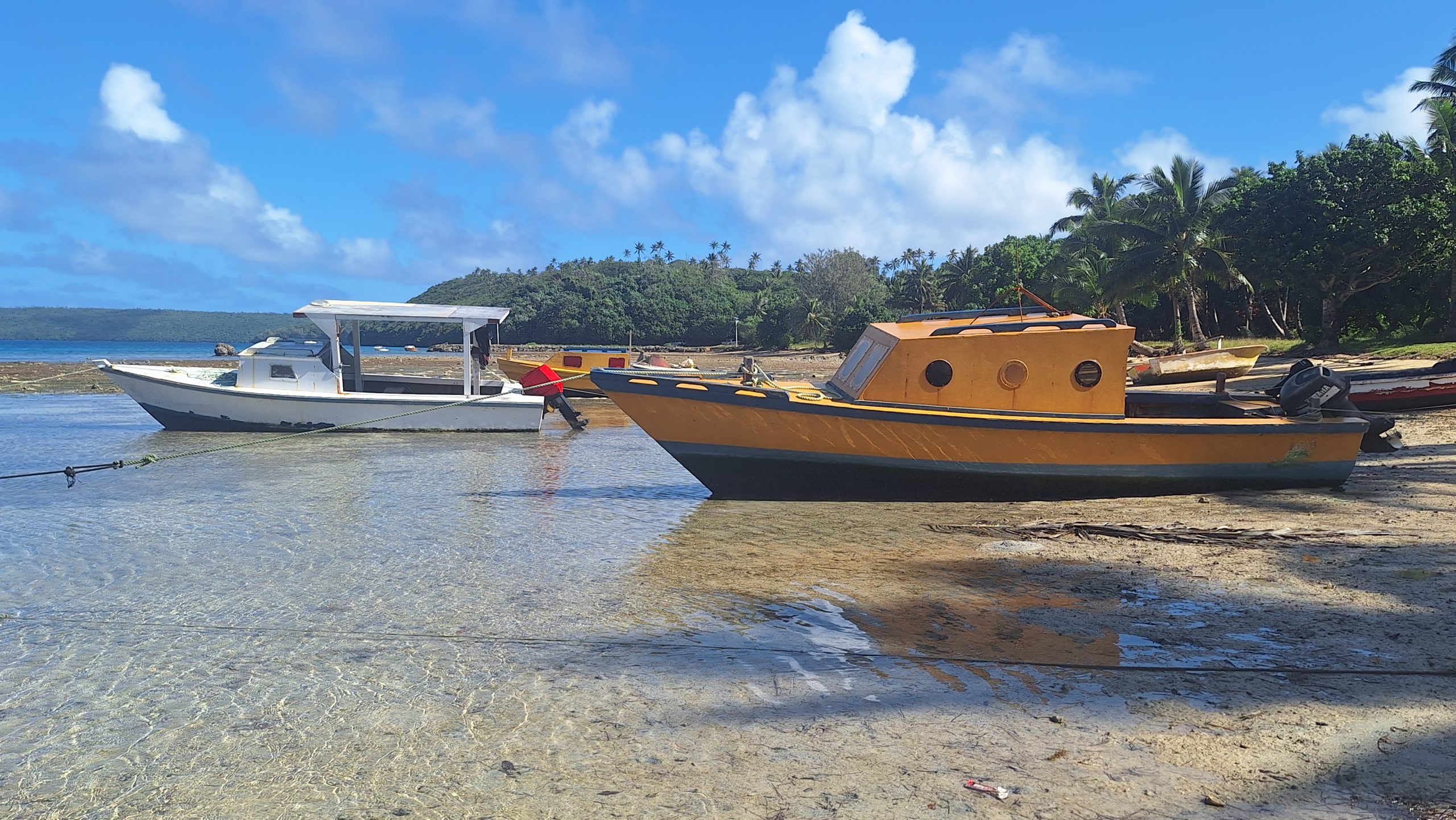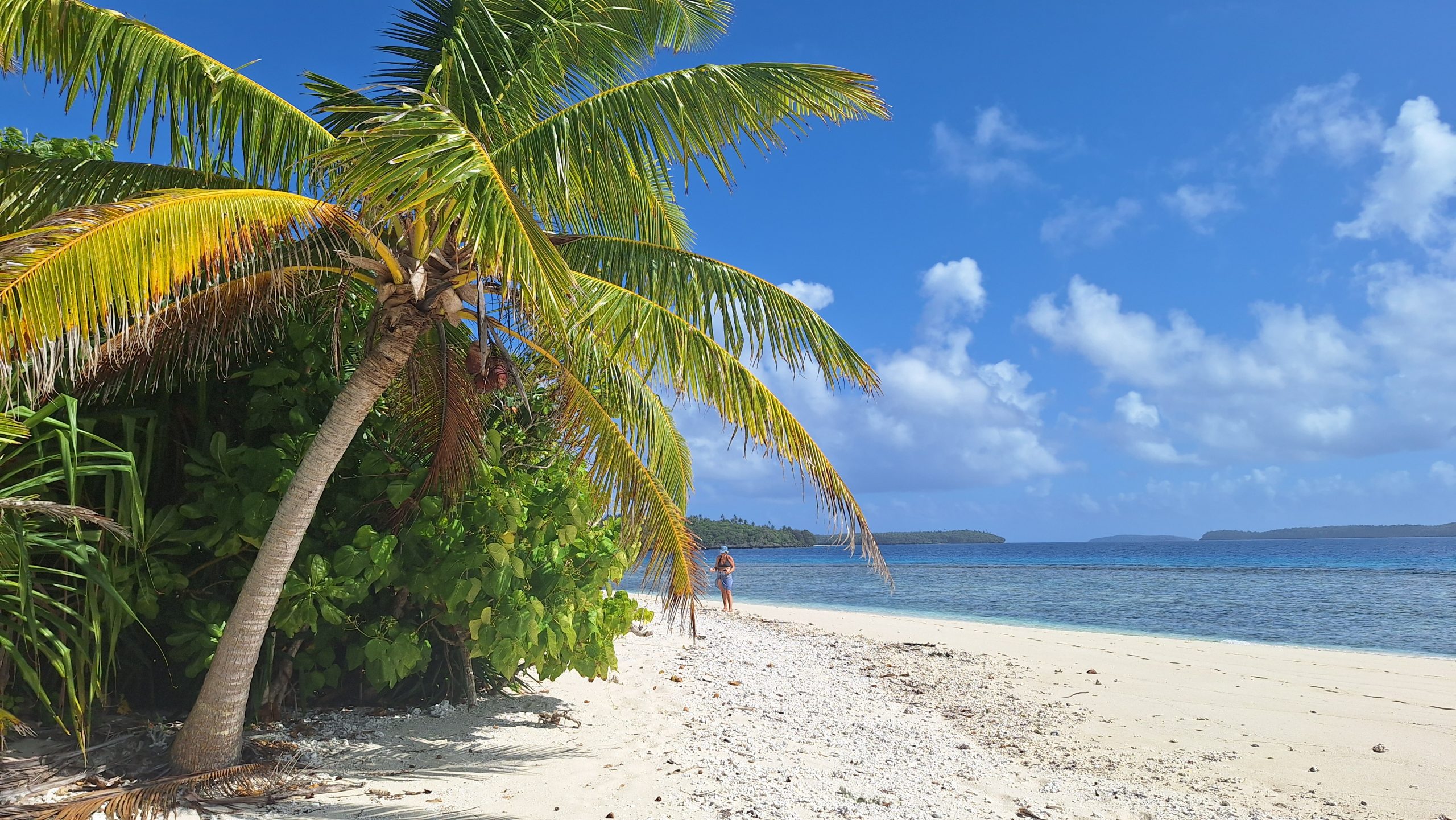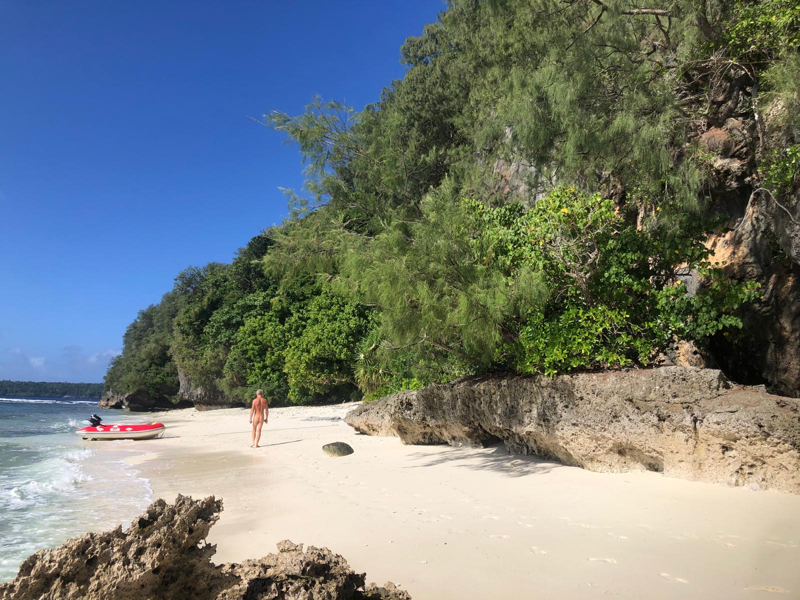 We have sheltered in a bay, where we have been before. We took a walkalong the beach to the reef at low tide. The rain has started, so what do we do on rainy days? We reupholster the seating. It is taking us a long long long time, nothing is straight, neither square and we haven’t choose the easiest pattern, but we have now completed the cushions seats and now have just started on the backs.