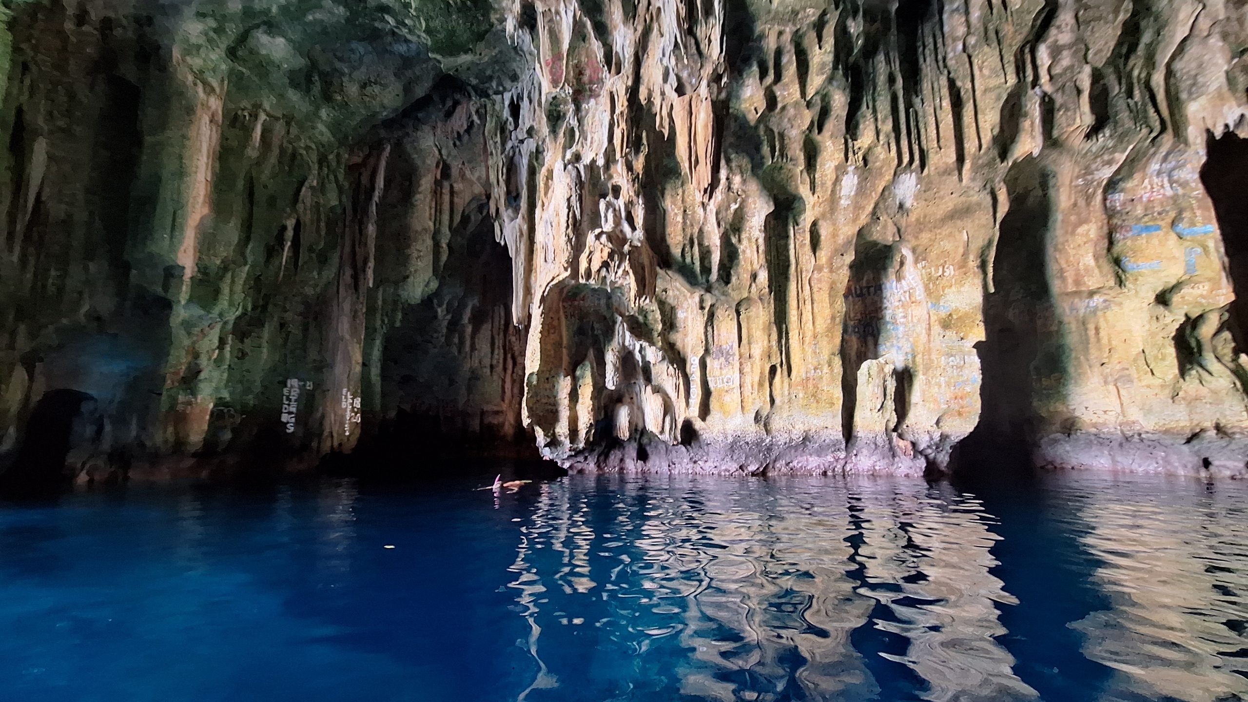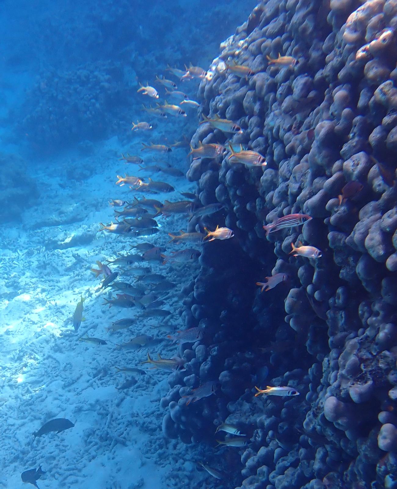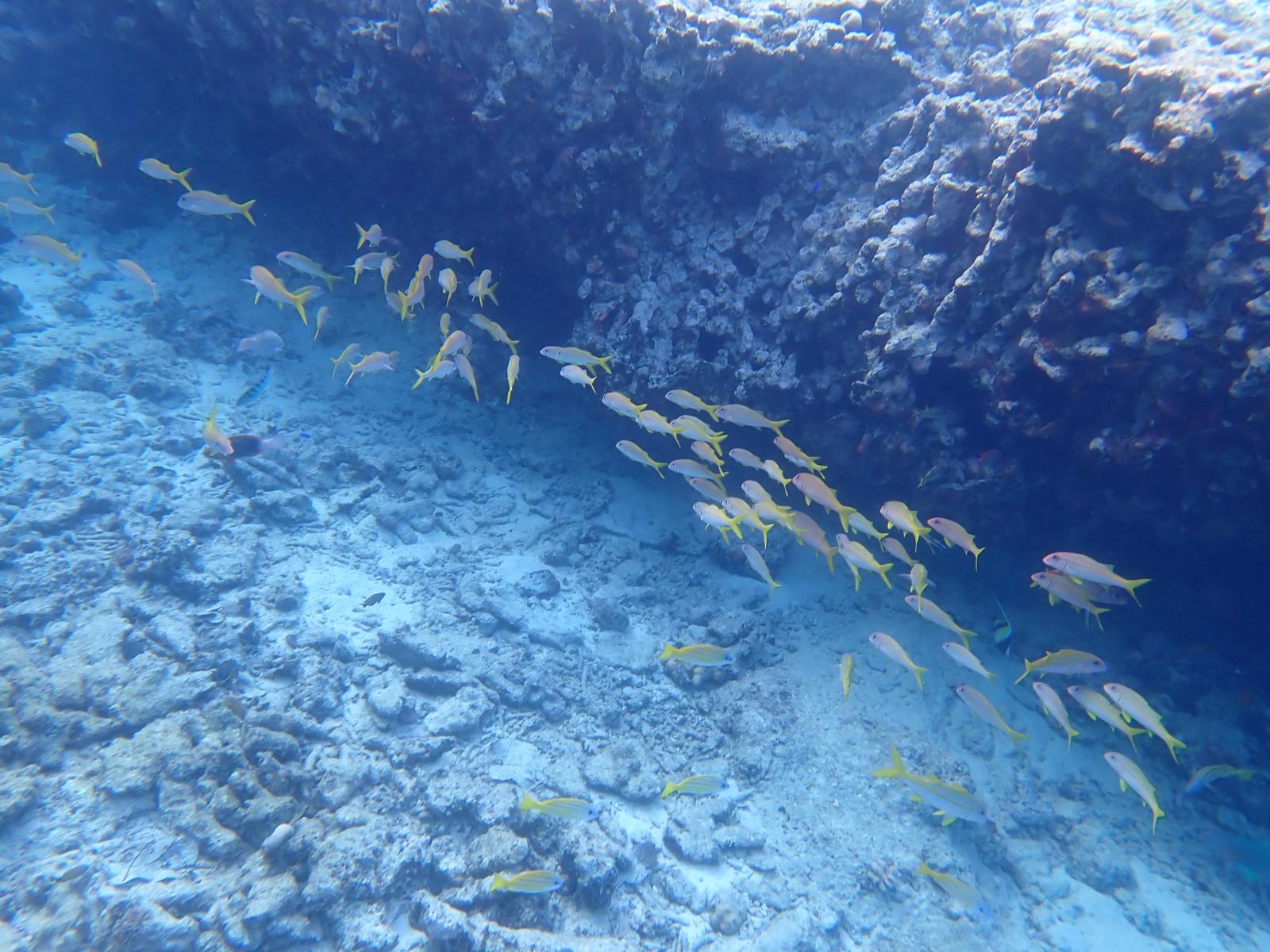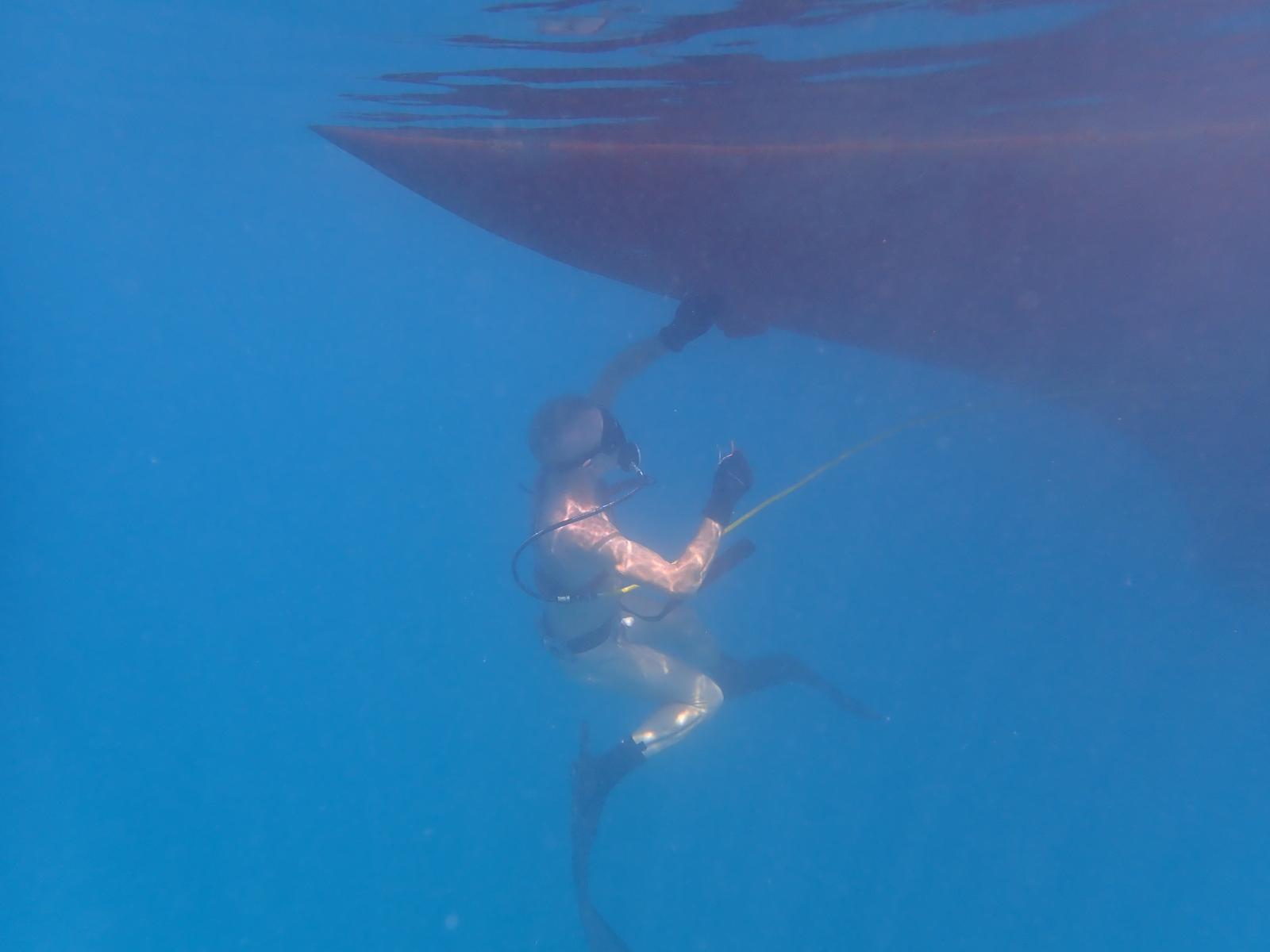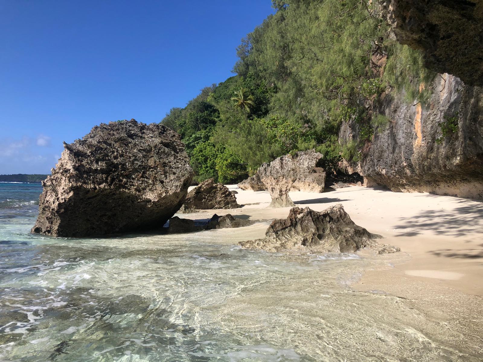 We have sheltered in a bay, where we have been before. We took a walkalong the beach to the reef at low tide. The rain has started, so what do we do on rainy days? We reupholster the seating. It is taking us a long long long time, nothing is straight, neither square and we haven’t choose the easiest pattern, but we have now completed the cushions seats and now have just started on the backs.
